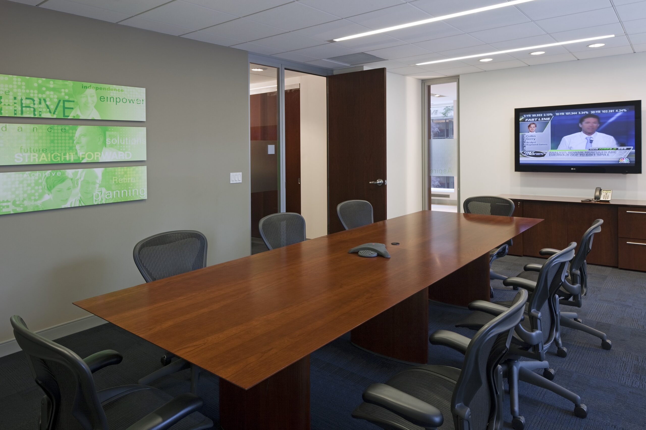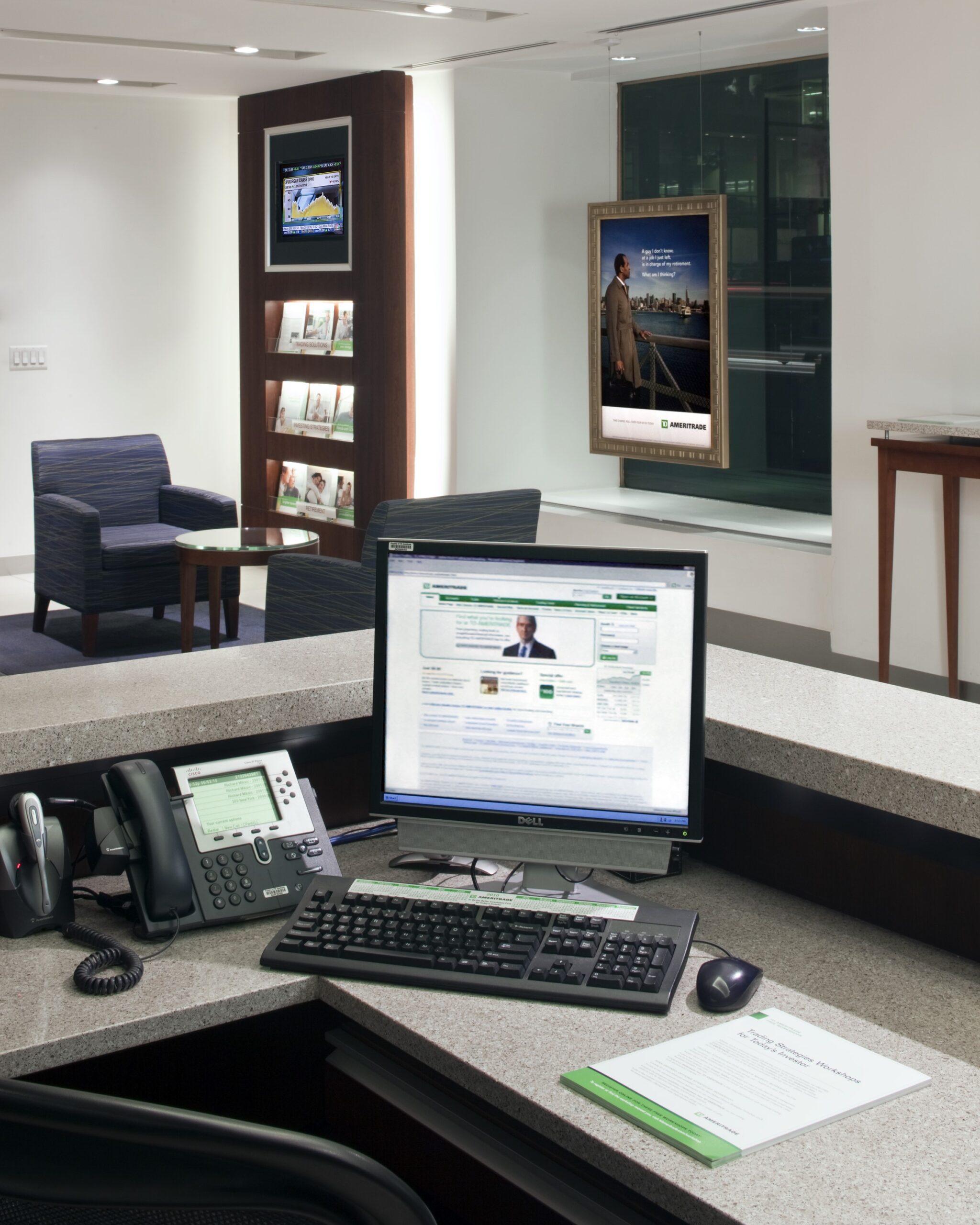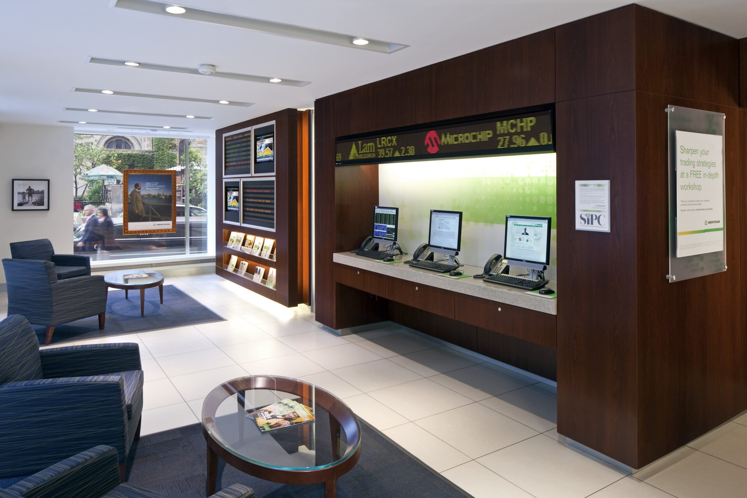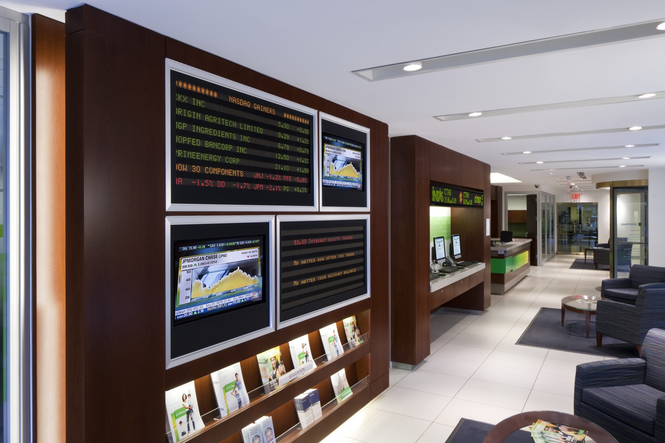 This retail financial brokerage firm was looking for serious visibility to the active Park Avenue area on the ground floor of the Waldorf Astoria. With positioning the stock ticker facing Park Avenue the walkers by can have the ability to see market activity from the street while the design of the office draws them into the space.