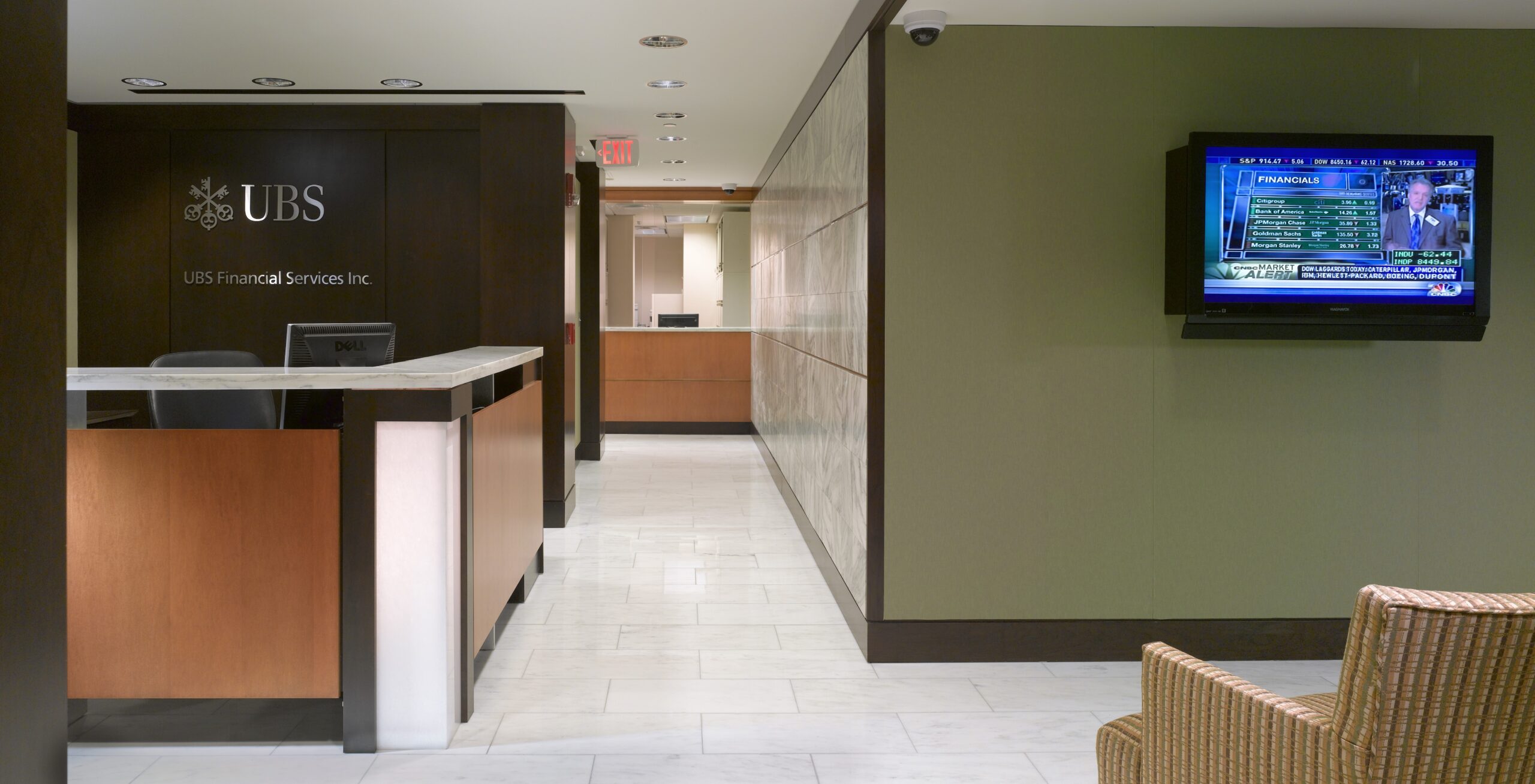 UBS Burlington, VT Our services Planning and Design DevelopmentProject Budgeting and ProgrammingArchitectural Space PlanningConstruction DocumentationConstruction AdministrationProject and Construction ManagementFurniture and Finish SelectionSchematics, 3D Rendering and ModelingLease Analysis and Site ReviewBid Review, Analysis and Negotiation Located near the Green Mountains in Vermont, GDS incorporated Vermont Granite from a nearby quarry into the reception design as well as adding certain illuminating stone into the custom reception desk. Client name UBS Project focus Commercial office.